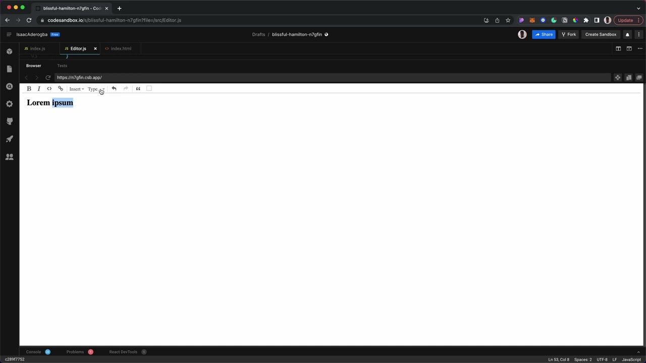 Using Portals seems to be the preferred approach for rendering custom node views in React. This works for the majority of cases, but I’m getting a weird bug where the cursor loses selection when converting from different block types.
